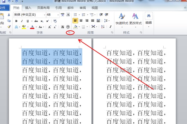 1、打开需要操作的WORD文档,选中相关文本点击开始选项卡中字体右下角的展开按钮。